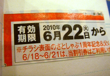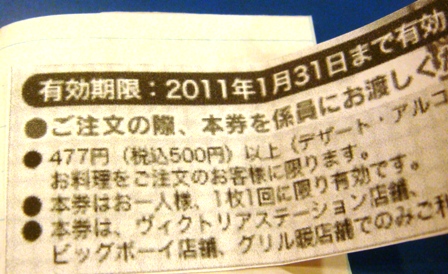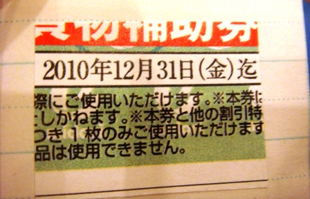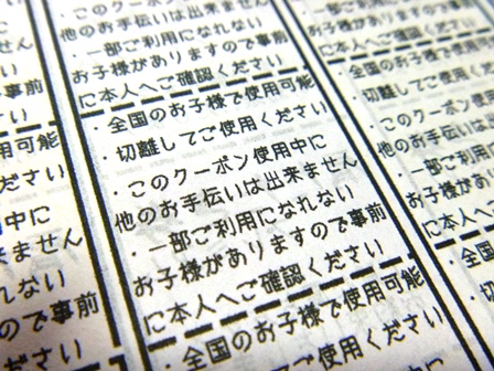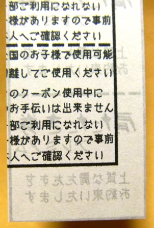 この券のプレミアムたる所以は、このように表のクーポンと裏の説明書きがズレて印刷されているところにあります。
