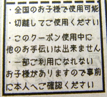 全国のお子様でご使用いただけますが、全国のお子様と提携しているわけではございませんので、この券が適用可能かどうかは、アナタの行動力と手腕によりにけりでございます。