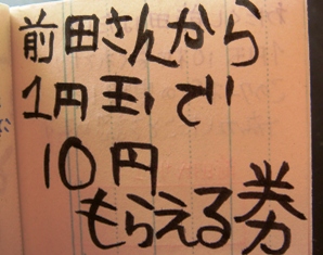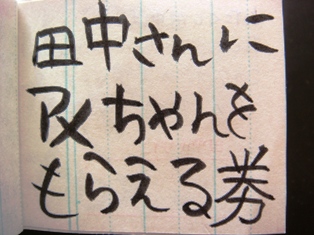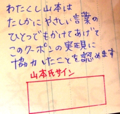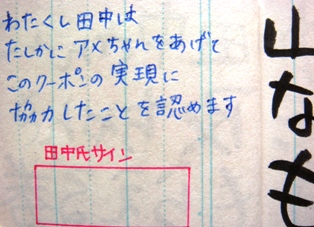 田中さんにアメちゃんをもらうための交渉がうまくいったら、あなたはこのクーポンの裏に田中さんから直筆サインをもらわねばなりません。