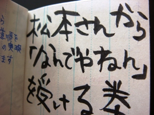 突っ込まれるのが先か、直筆サインが先か、というコロンブス問題についての判断は、あなたに一任します。もちろん、ダウンタウンに無関係の松本さんに突っ込んでもらっても差し支えありません。せっかくの機会ですから、どうせ同じ「なんでやねん」を受けるのであれば、ダウンタウンの松本さんがいいのではないか、というのが当研究所の見解です。ダウンタウンの松本さんに限定しなければ、まだこの松本さんに協力を願うクーポンは、難易度は高くないはずです。