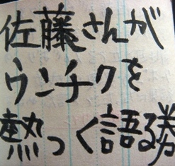 ウンチクをあっつく語りたがっている佐藤さんにそれはそれは気持ち良くウンチクを語ってもらってください。