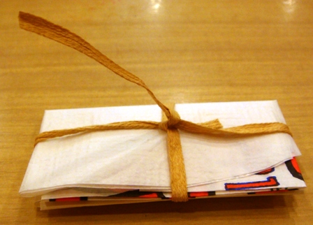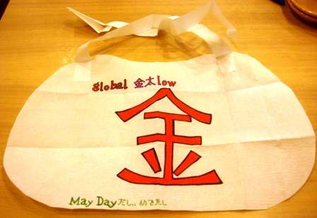 本来の金太郎前掛は菱形(◇←このような形)をしているわけですが、素材が紙で出来ておりますので鋭利な刃物とならぬよう配慮した結果、丸みをもたせたフォルムになりました。