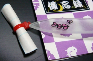 お礼の一筆は巻紙風に仕立て結束バンドでこれでもかと締めつけギリギリで切り落とし丁寧に爪やすりで削りました。
